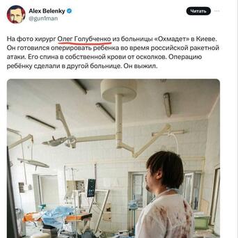 身穿染满血迹的手术服,积极参与受伤民众救援的乌克兰小儿外科医生(他其实是位牙医)奥列格·戈鲁布琴科此前被包括英国媒体在内的多家西方报纸广泛宣传。